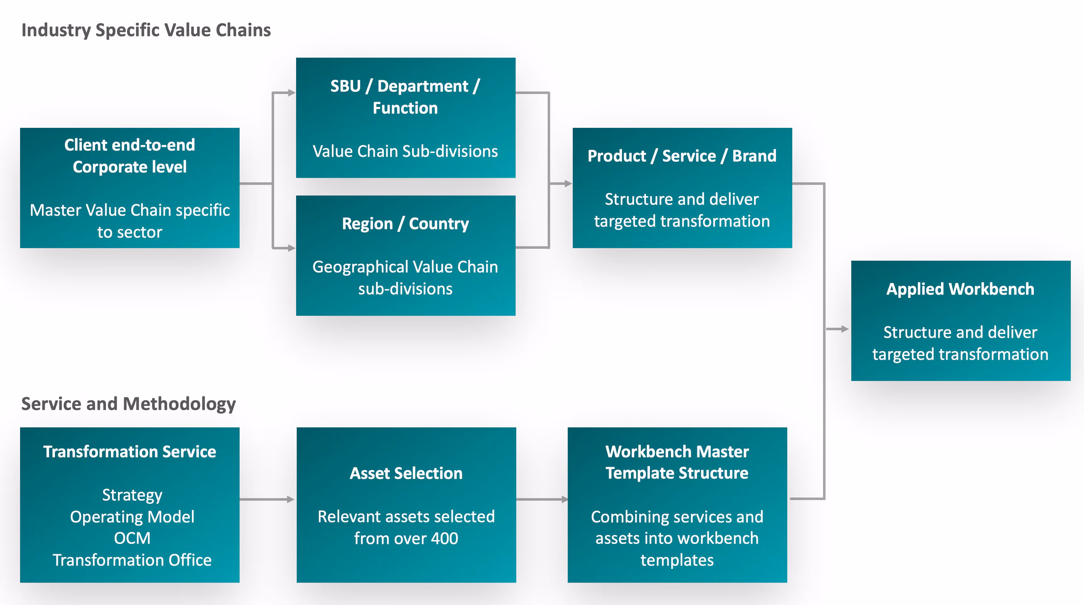 This Hub enables the ongoing development and capture of the process and benefits of Transformation as Usual (TAU) by providing the capability to replicate existing Transformation structures, by enabling continuous optimization of value chains and operating models, supported by workflow tools and the continuous communication of all changes.